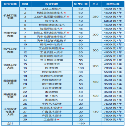 学校根据考生类别、报名人数及专业计划,实施分类分专业录取,录取专业以考生所填报的第一专业志愿为准,未录取的考生不再进行专业调剂。机械装备制造技术、工业产品质量检测技术、智能工程机械运用技术、智能焊接技术、工业互联网应用、包装艺术设计、产品艺术设计等七个专业录取后不允许调整专业。各类别考生录取办法如下: