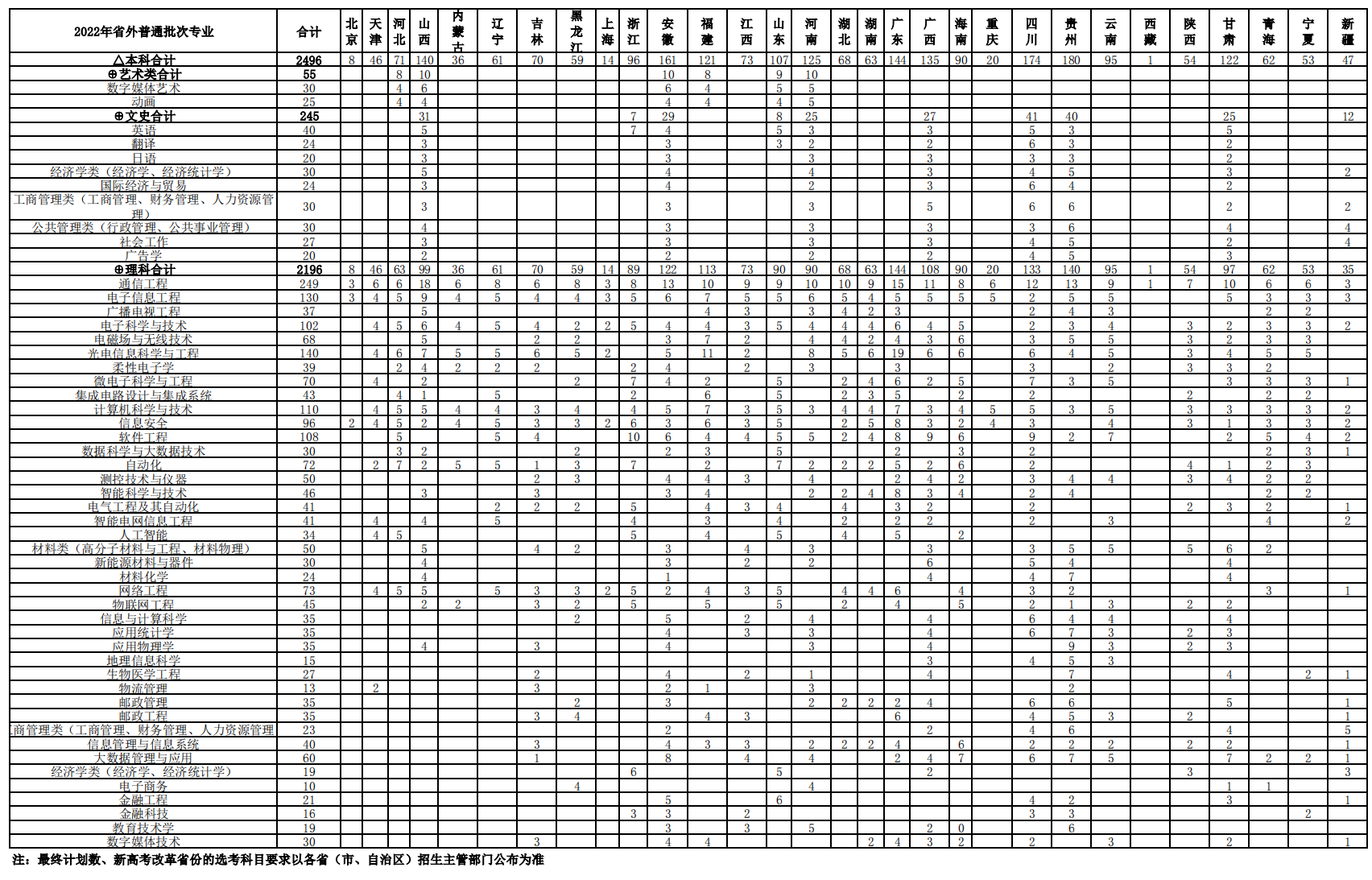 南京邮电大学2022年江苏省招生计划表 / 南京邮电大学2022年江苏省外招生计划表 / 南京邮电大学2022年江苏省外国家专项招生计划表