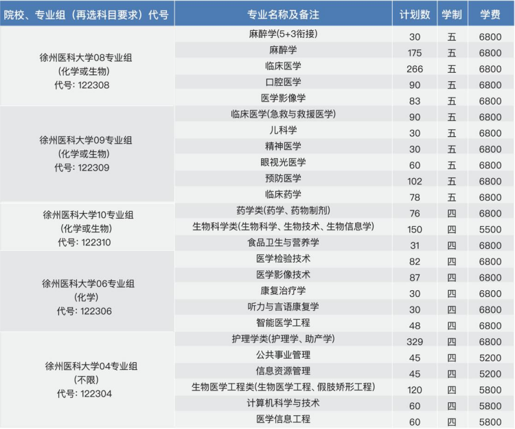 徐州医科大学2023年江苏省本科招生计划(代码1223)