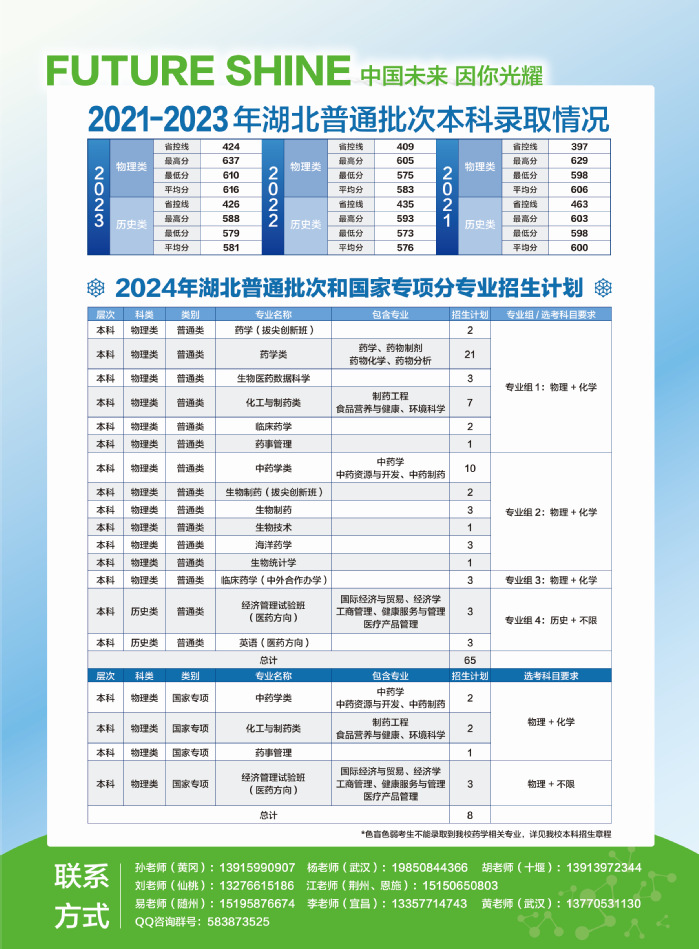 2024年湖北宣传单页(含录取分数、招生计划、选科要求及联系方式)