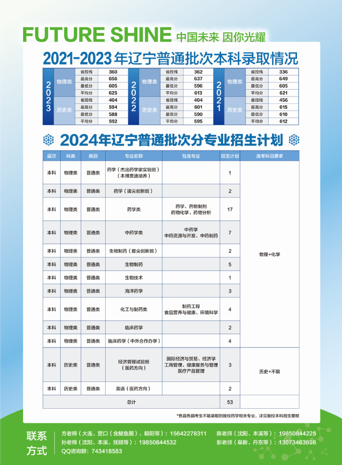 2024年辽宁宣传单页(含录取分数、招生计划、选科要求及联系方式)