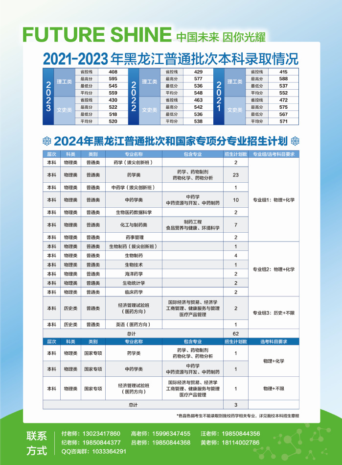 2024年黑龙江宣传单页(含录取分数、招生计划、选科要求及联系方式)