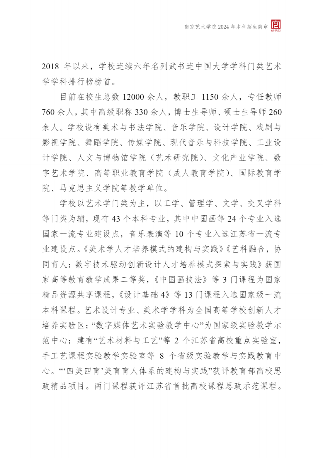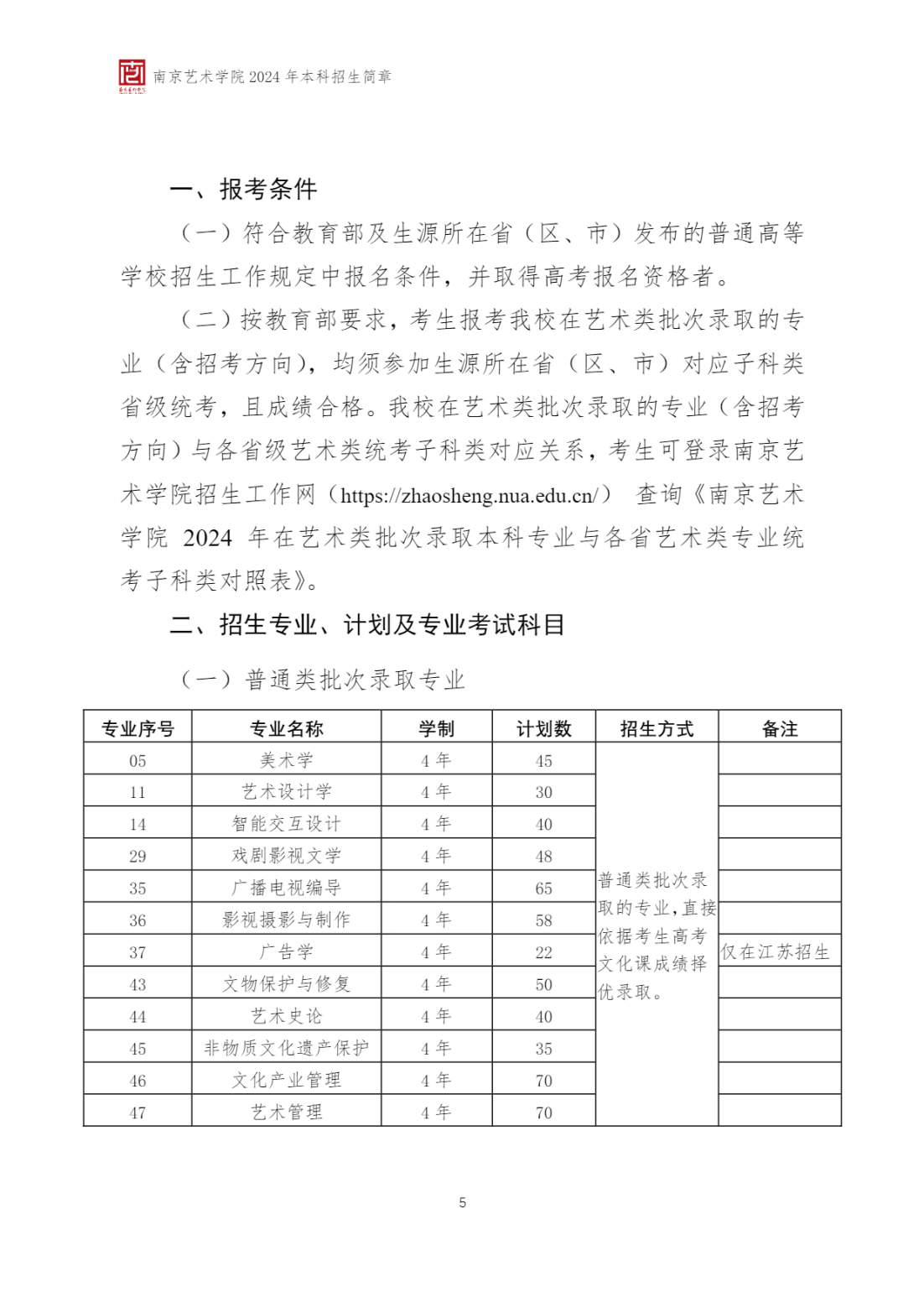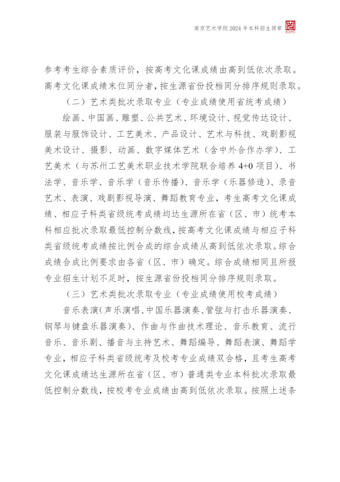 2024年 : 南京艺术学院-2024年招生简章(附:南京艺术学院 2024 年在艺术类批次录取本科专业与各省艺术类专业统考子科类对照表)