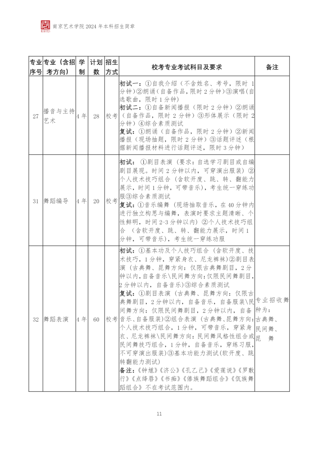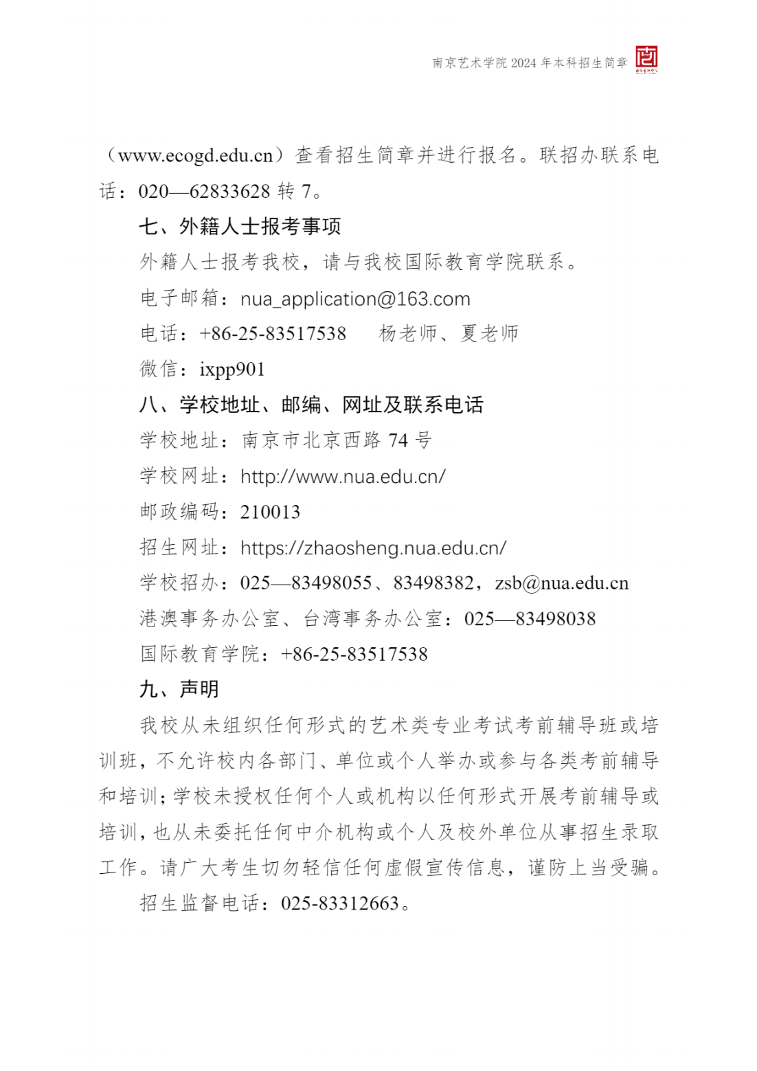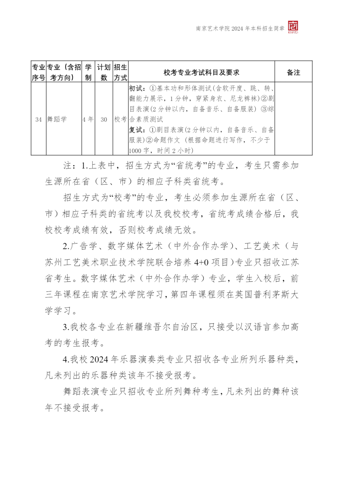 2024年 : 南京艺术学院-2024年招生简章(附:南京艺术学院 2024 年在艺术类批次录取本科专业与各省艺术类专业统考子科类对照表)