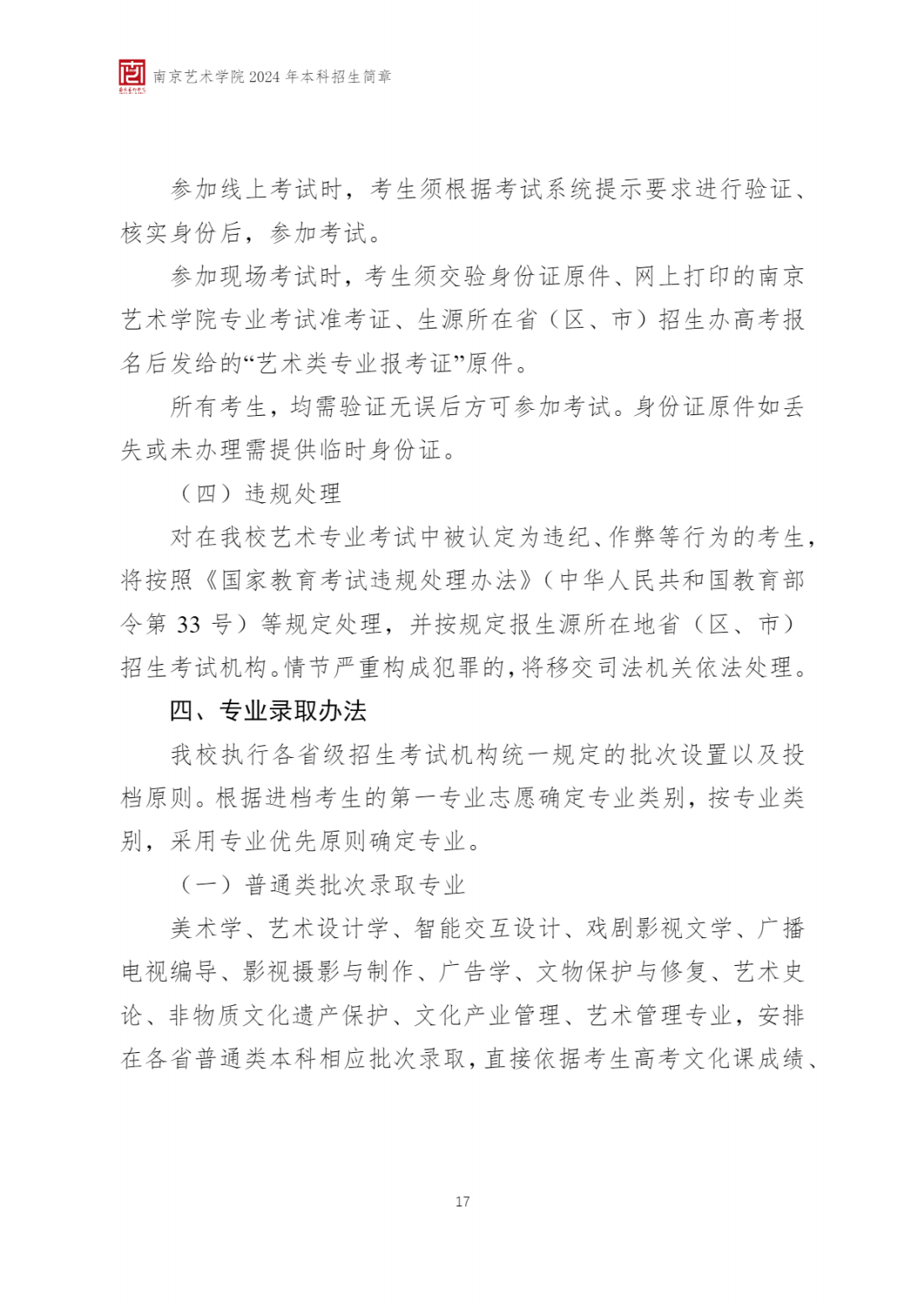 附件【南京艺术学院2024年本科招生简章.pdf】点击下载或在线观看