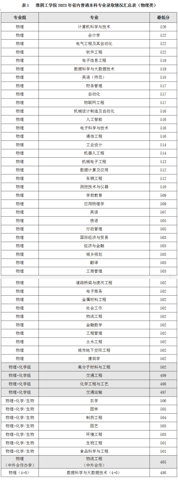 2021年 : 淮阴工学院近年省内外普通本科录取分数线一览表