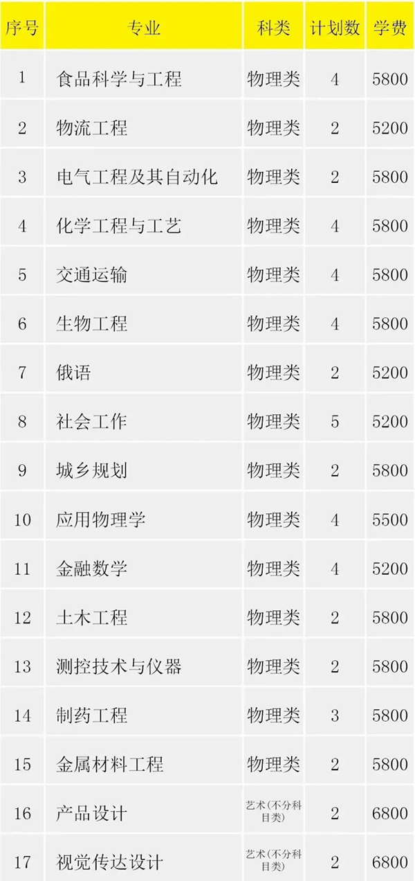 淮阴工学院2023年省外招生计划