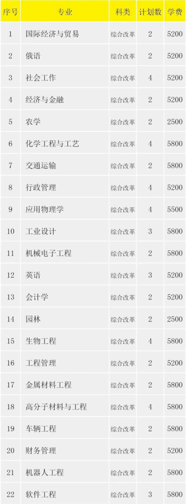 2023年吉林招生计划表