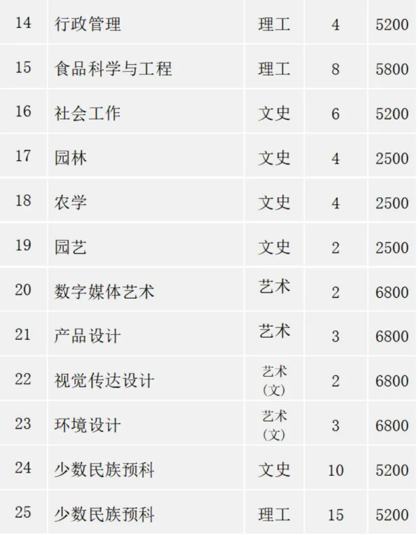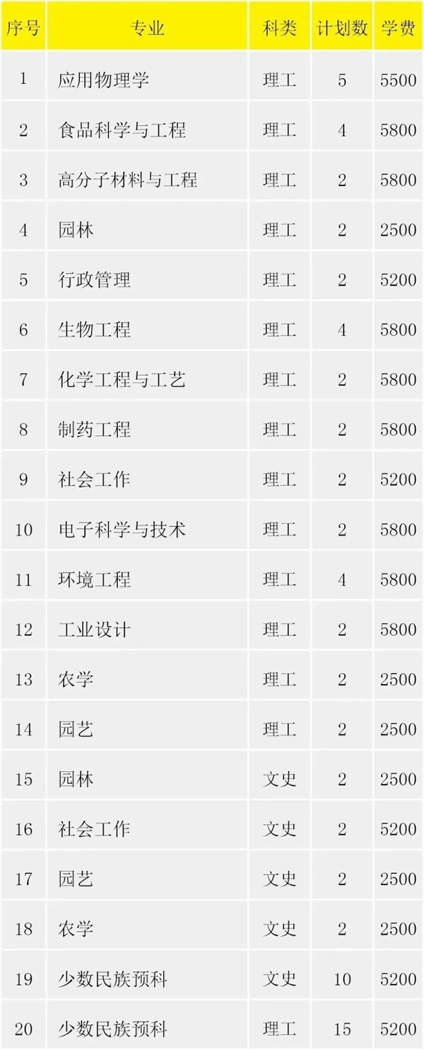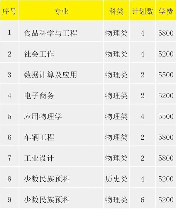2023年云南招生计划表