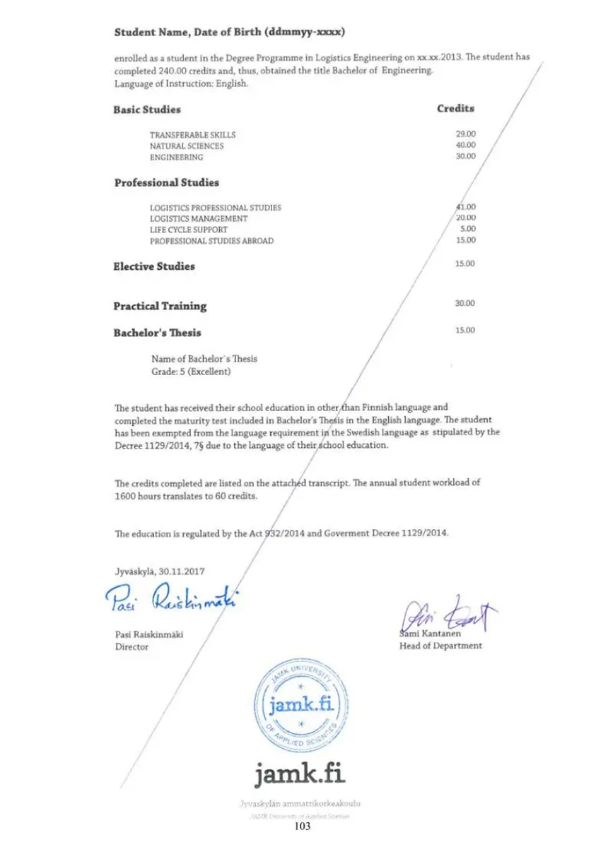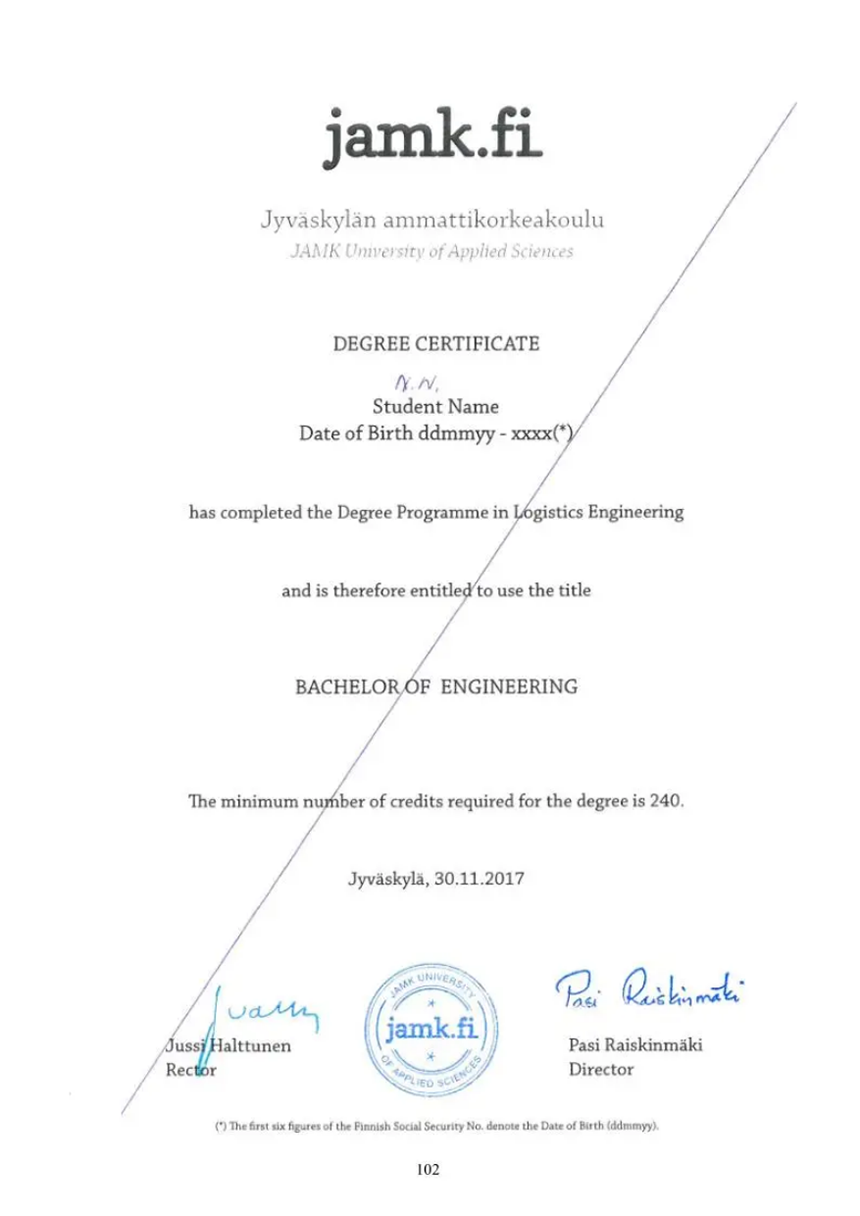 JAMK的物流工程专业具有50多年的办学历史,是芬兰规模最大的物流学位授予点,培养了芬兰半数以上的物流专业人才,通过EUR-ACE质量认证,成为芬兰同类专业中的一枝独秀。物流工程专业英语授课已有20多年,具有人才培养及物流专业网络建设的国际视野。专业所在的科技学院是全校最大规模的二级学院,科研及企业服务能力、毕业生平均就业率全校第一,也是芬兰国内一直排名前三的工程技术类学院。