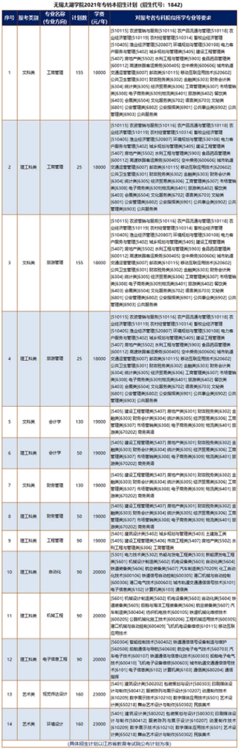 无锡太湖学院2021年“专转本”招生简章