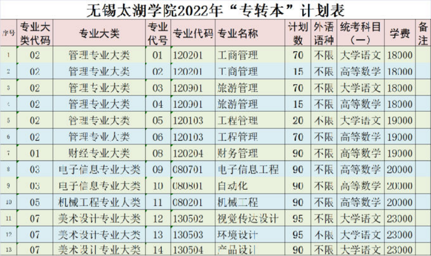 四、招生计划:无锡太湖学院2022年专转本招生计划(招生代号:1842)