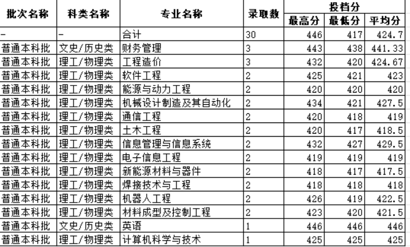 2024年安徽省招生专业录取分数情况