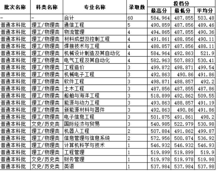 2024年广东省招生专业录取分数情况