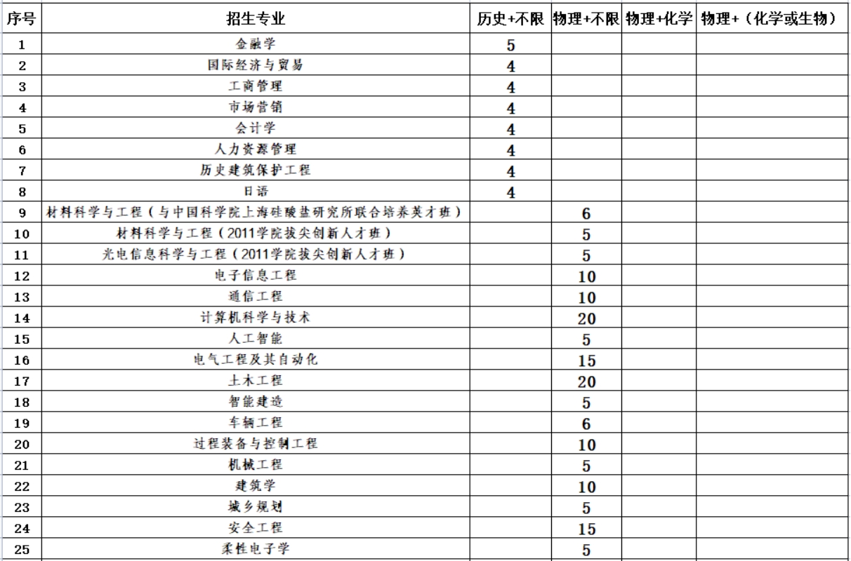 南京工业大学2023年综合评价招生计划