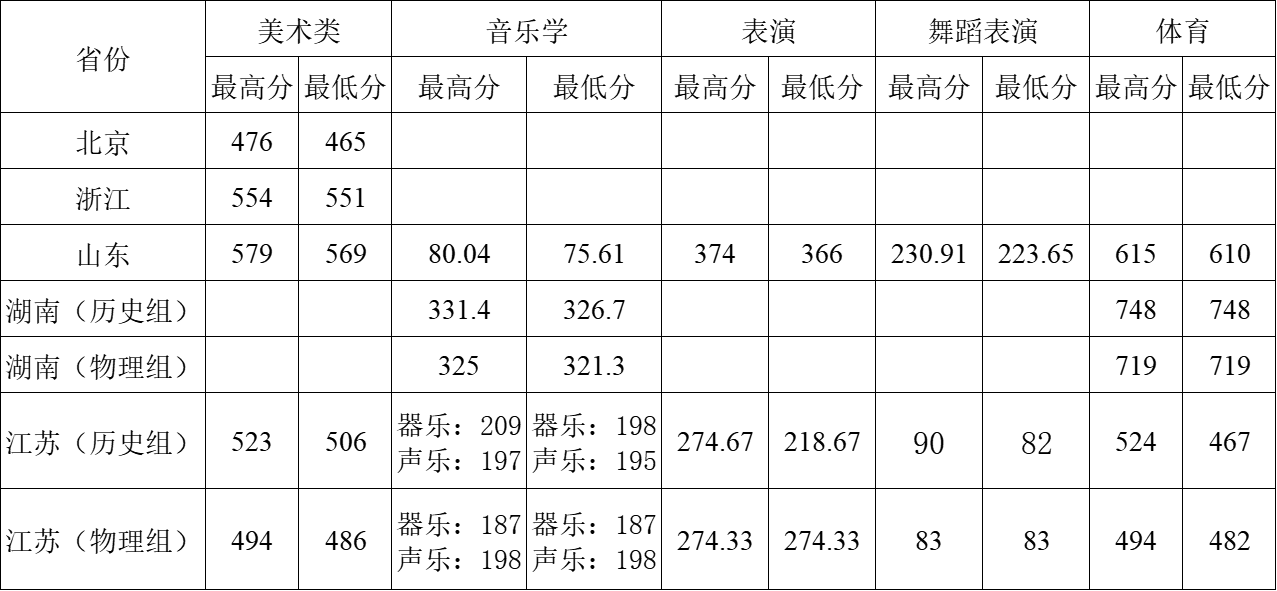 2021年 : 常州大学2021年各省艺体类录取分数线汇总表