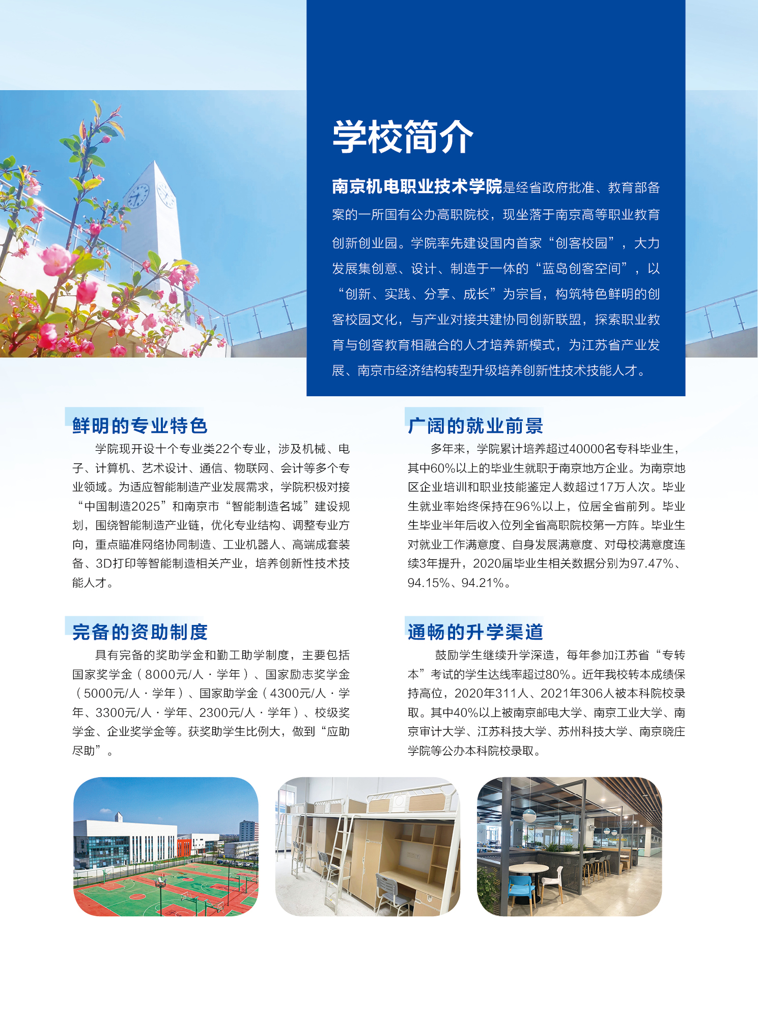 2021年 : 南京机电职业技术学院2021年普高招生简章(图)