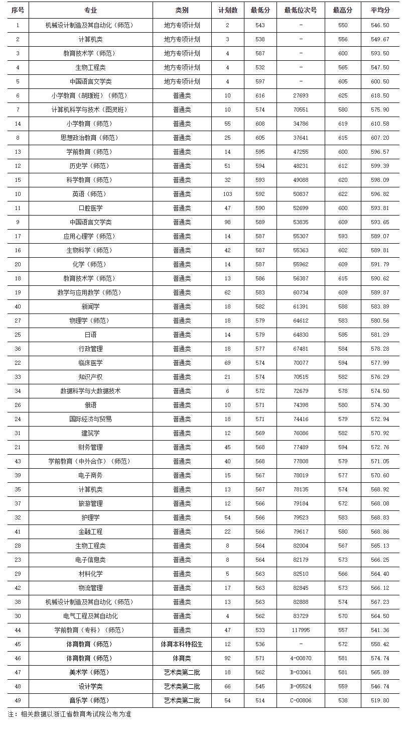 2021年 : 湖州师范学院2021年浙江省分专业录取分数线
