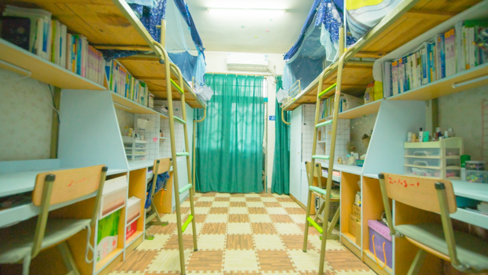 学校生活区设施齐全,配套建有4-5人的标准宿舍和别具专业特色的休闲区。学生可根据需要选择热水、空调等付费项目。