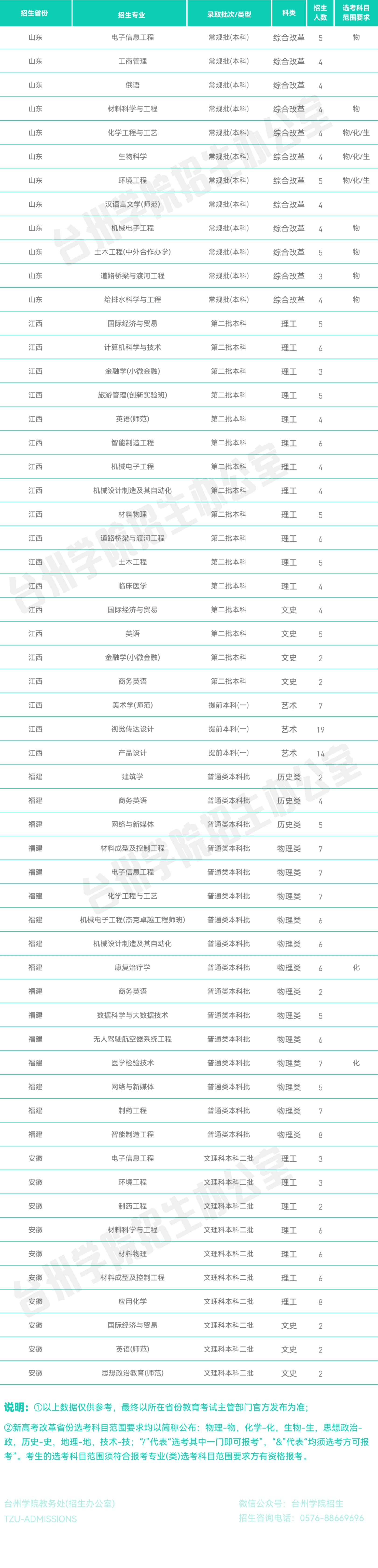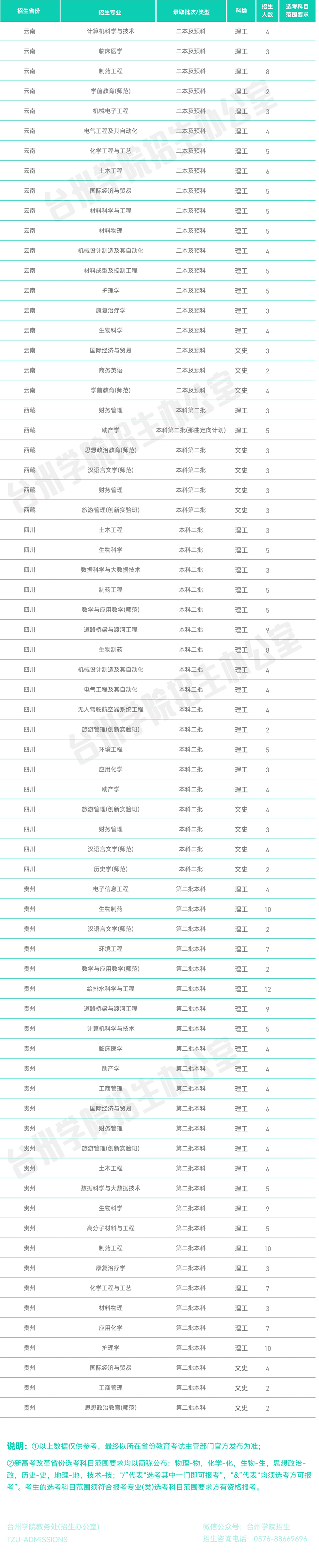 根据工作安排,现将全国普通高考和浙江省内单独考试招生招生计划公布如下(详见下表):TAIZHOU