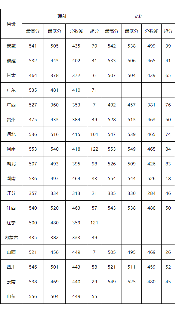 丽水学院-2020年丽水学院分省新生录取分数统计表