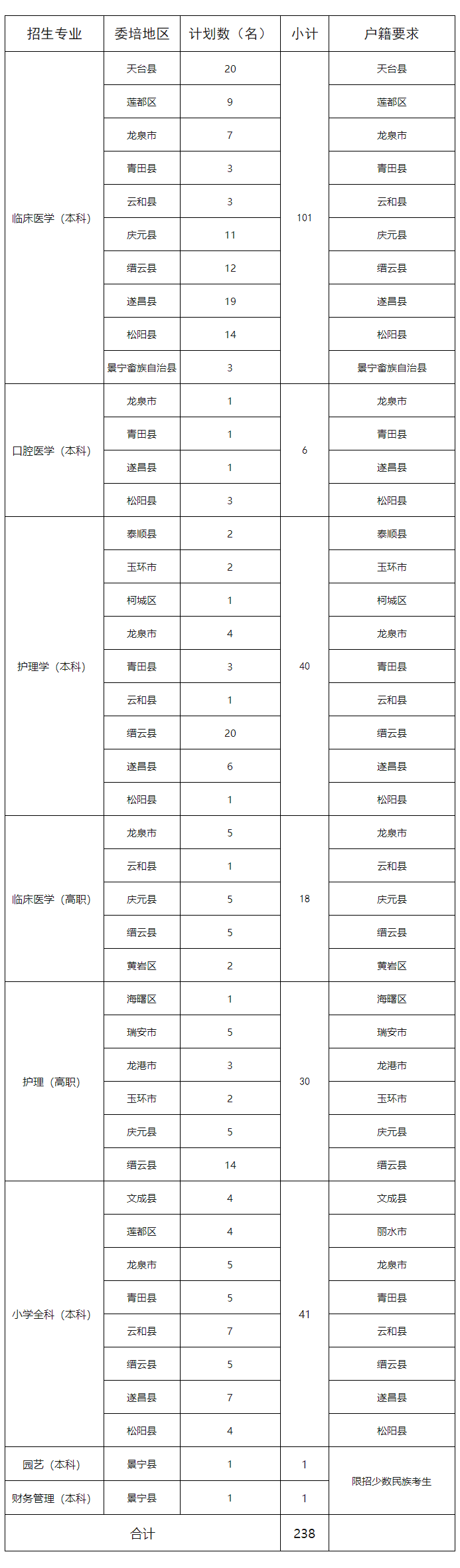 • 丽水学院2021年定向招生计划表