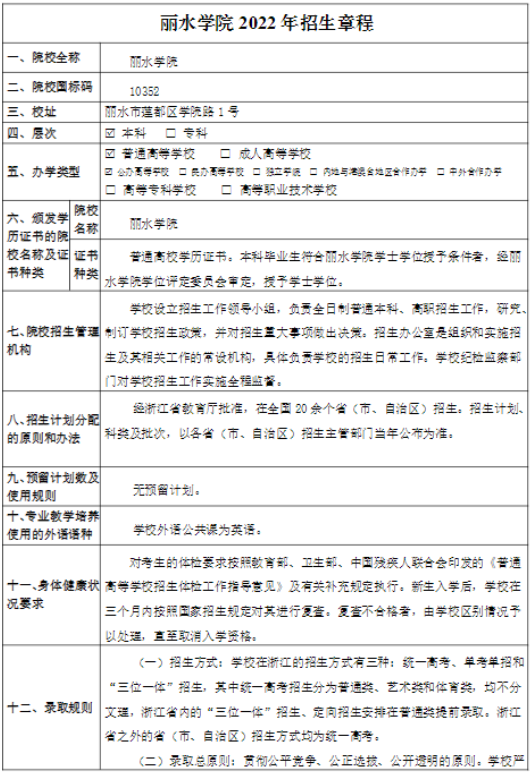 2022年 : 丽水学院2022年“三位一体”综合评价招生章程