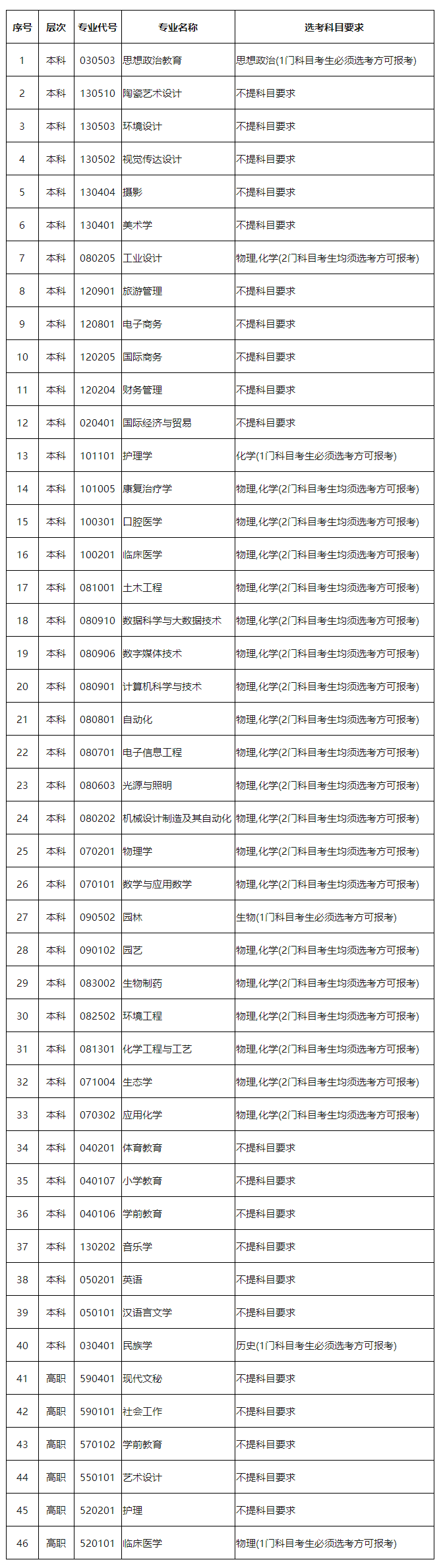 2022年 : 丽水学院2024年选考科目要求(通用版,适用于所有新高考改革省份)
