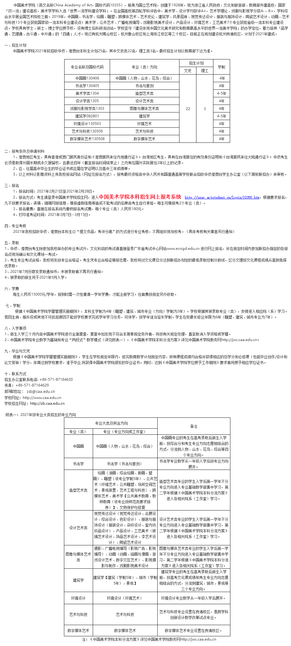 2021年 : 中国美术学院2021年招收华侨、港澳台本科生简章