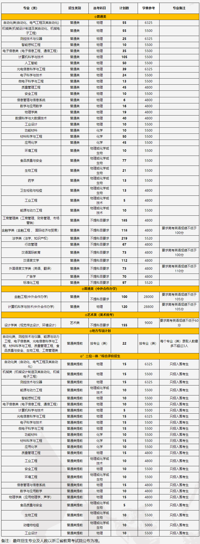 2022年 : 中国计量大学2022年招生来源计划(浙江省)