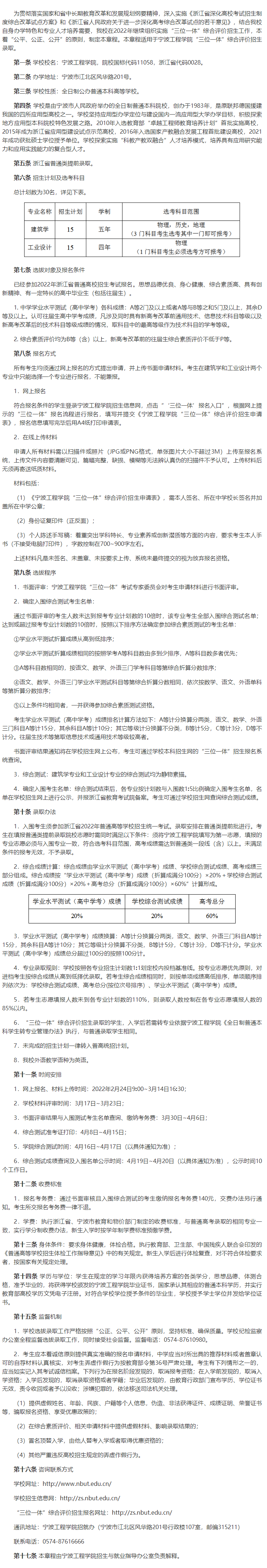 2022年 : 宁波工程学院2022年三位一体综合评价招生章程