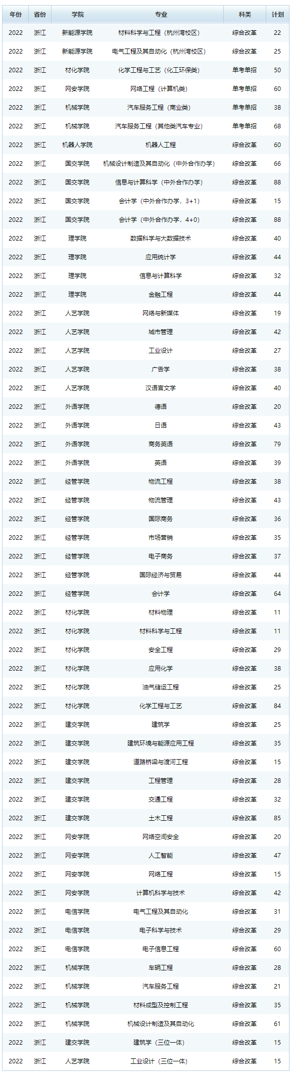 2022年 : 宁波工程学院2022年招生计划(全国)