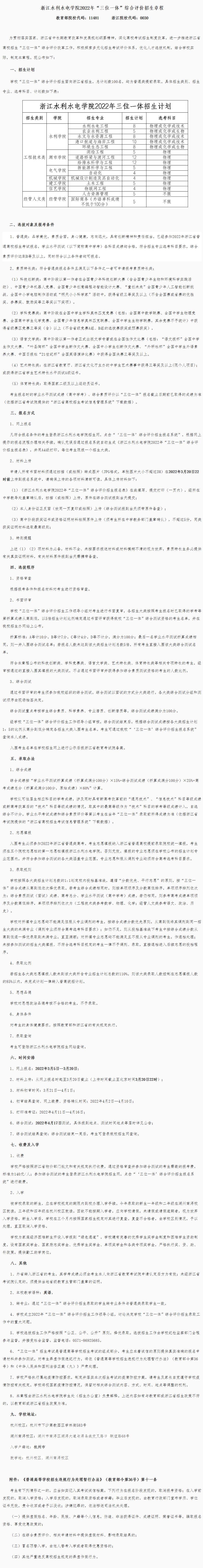 2022年 : 浙江水利水电学院2022年“三位一体”综合评价招生章程