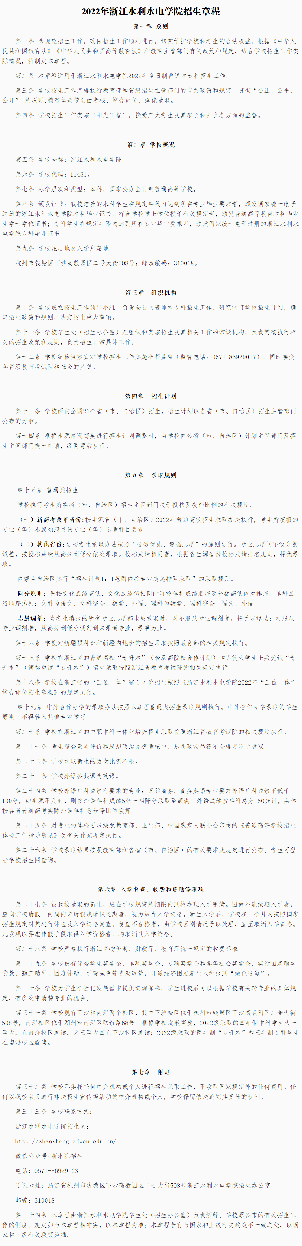 2022年 : 浙江水利水电学院2022年普通高校招生章程