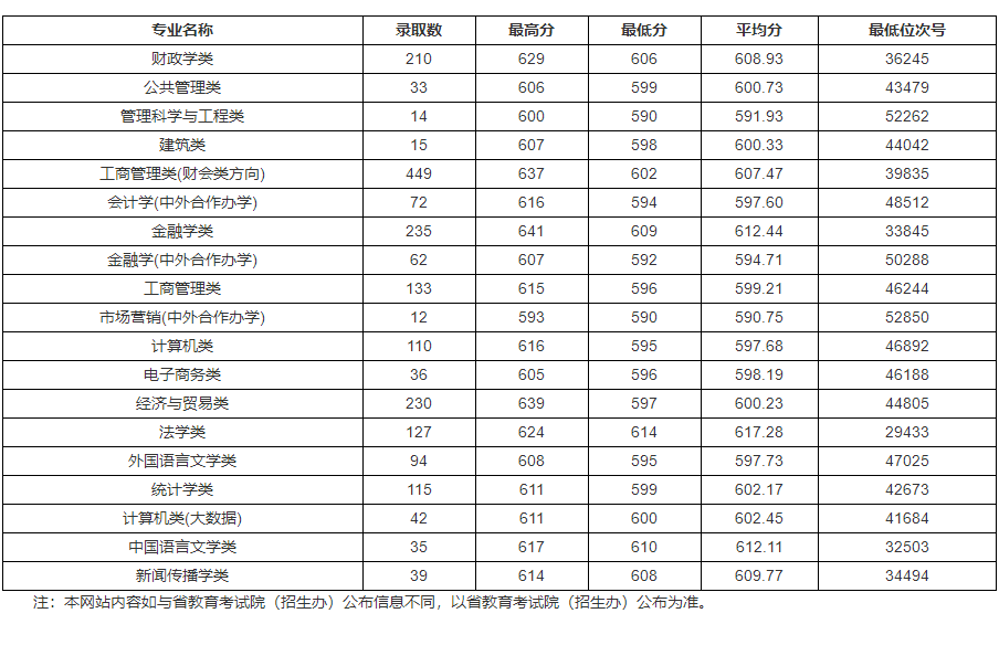 浙江财经大学2021年普通类各专业录取情况(浙江省)