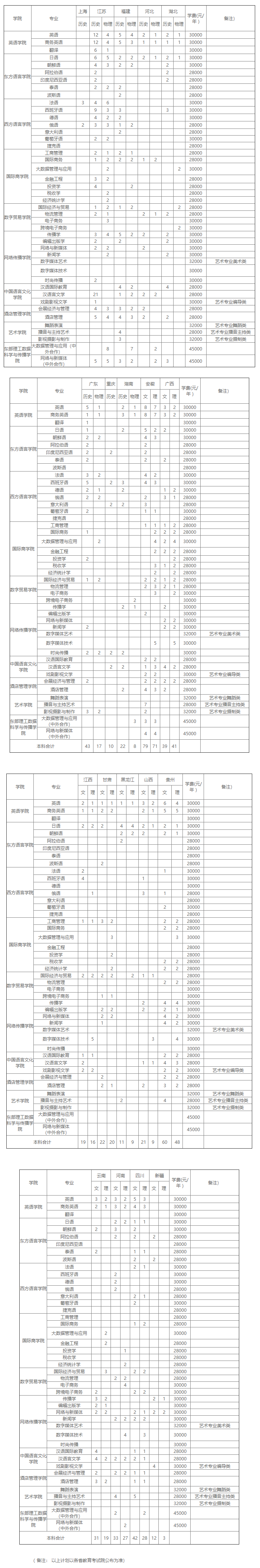 2022年 : 浙江越秀外国语学院2022年本科招生计划(省外)