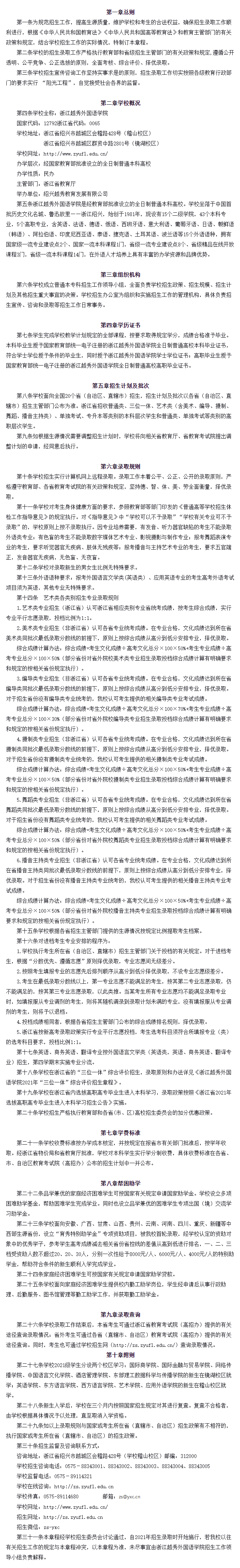 2021年 : 浙江越秀外国语学院2021年招生章程