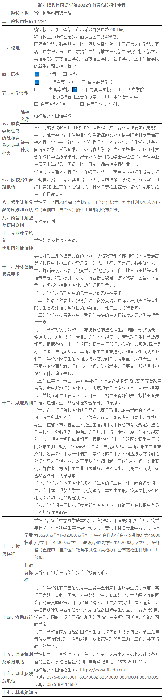 2022年 : 浙江越秀外国语学院2022年普通高校招生章程