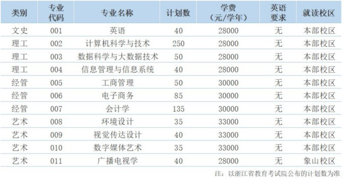 第六条 学校国标码:13001,浙江省招生代码:0074