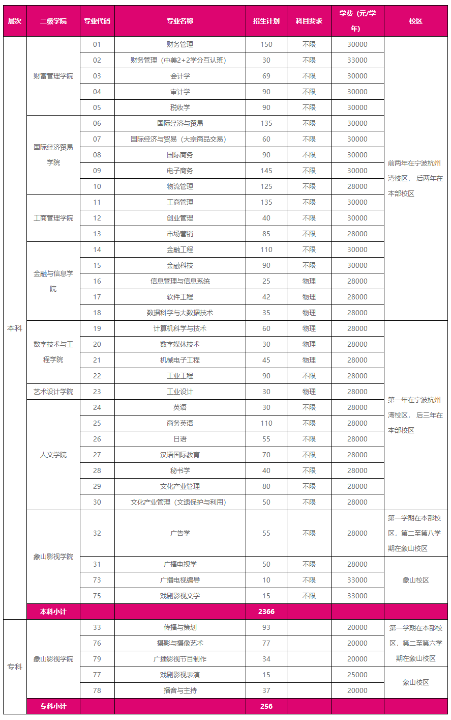 2022年 : 2022年宁波财经学院招生计划(外省)