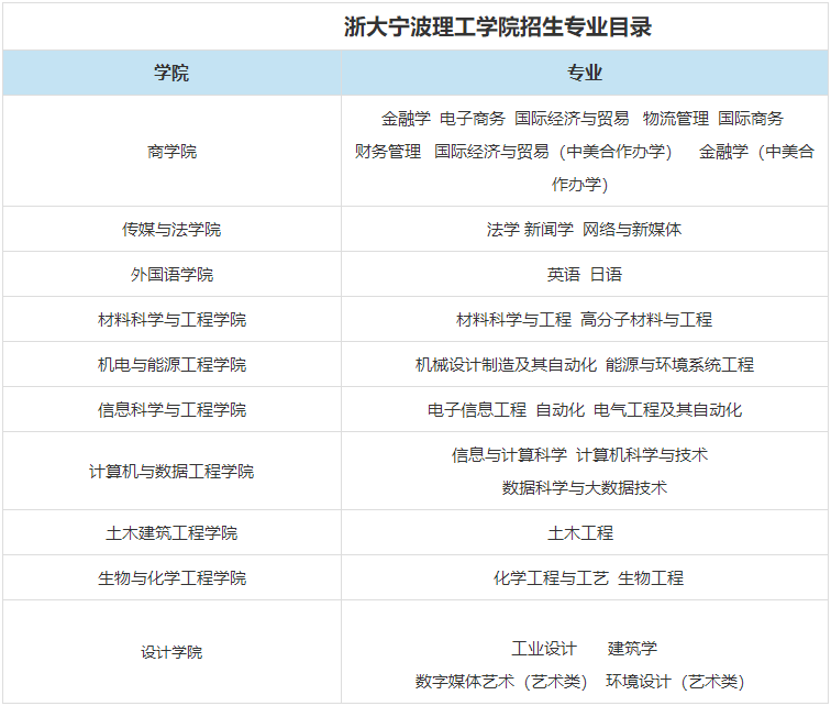 专业 : 浙江大学宁波理工学院招生专业目录