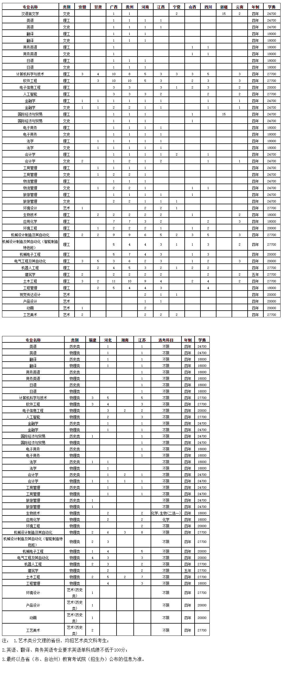 2021年 : 2021年宁波大学科学技术学院外省招生计划