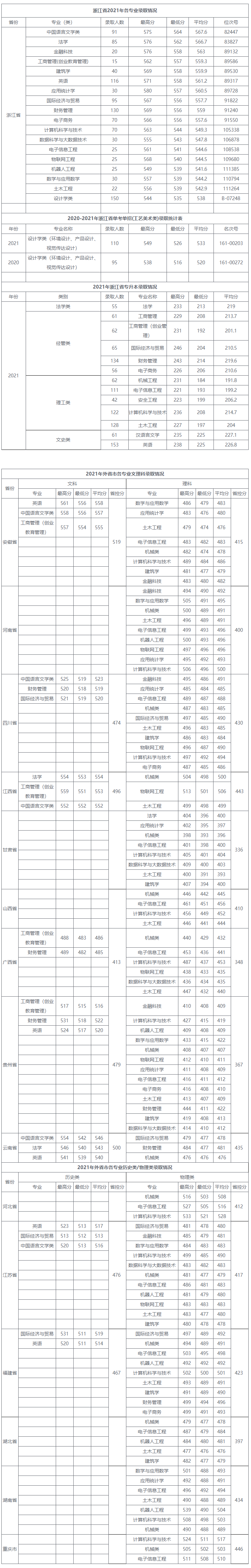 2021年 : 温州理工学院2021年各省各专业录取情况