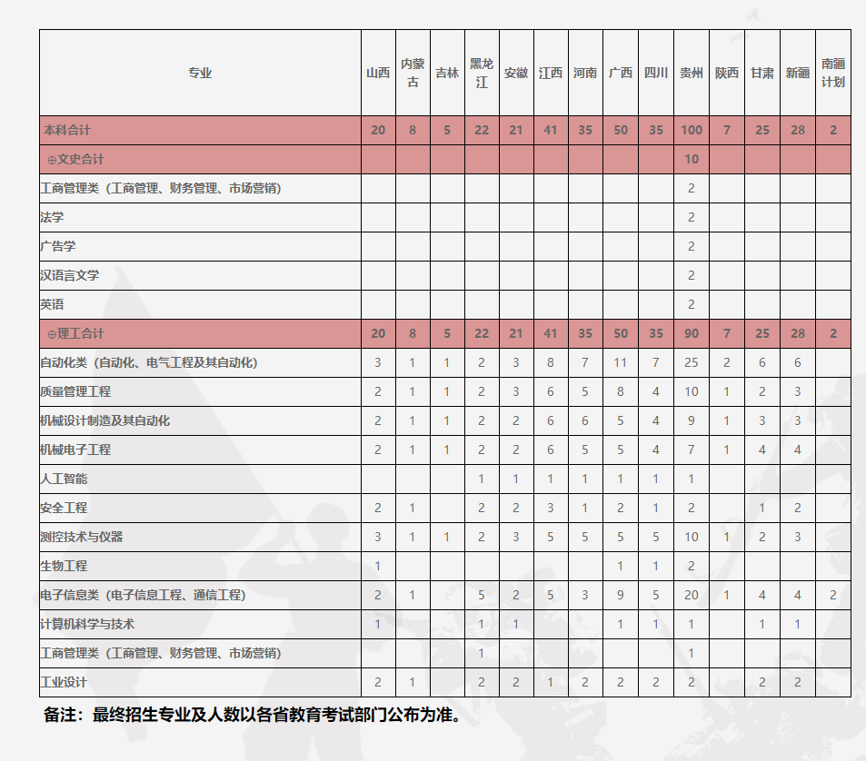 中国计量大学现代科技学院2021年招生来源计划(其他省份)