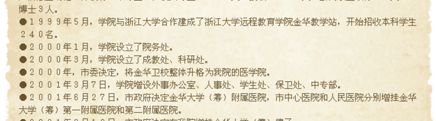 2000年,市委决定将金华卫校与金华职业技术学院并轨办学成立医学院。