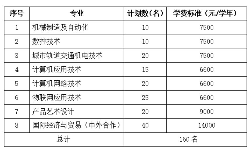 第五条 面向浙江省应往届普高招生考生,招生共计160名,具体如下: