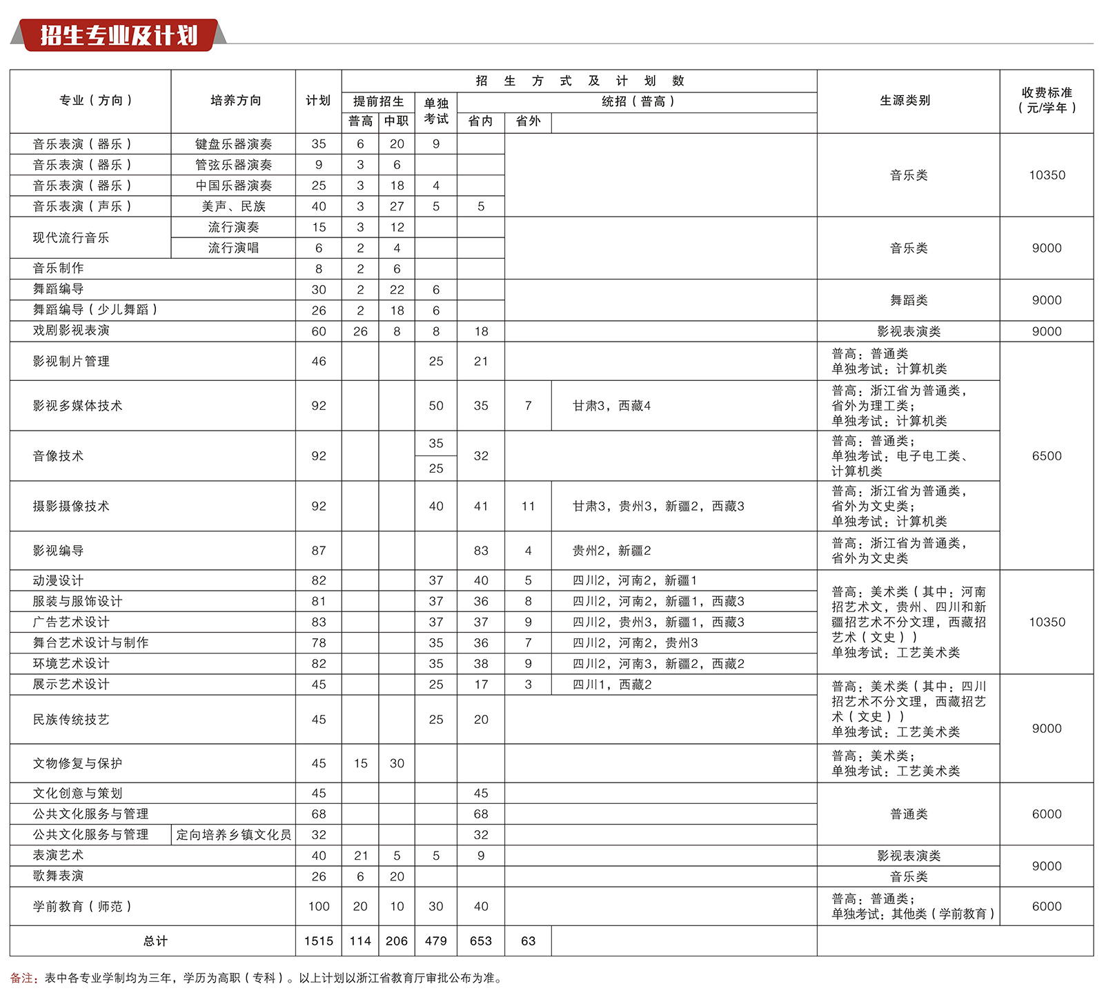 第三条 学校分滨文路本部校园和东冠校区,占地230多亩,建筑面积11万余平方米。目前全日制在校生6100余人,教职工近600人,设有戏曲、音乐、舞蹈、设计、戏剧影视、手工艺、演艺与教育等七大二级学院和附属中专(浙江艺术学校)、基础教学部(公共体育部)、马克思主义学院、教学实践中心、继续教育学院。共开设30个专业,其中戏曲表演专业为首批全国职业院校民族文化传承与创新示范专业点,戏曲表演、戏剧影视表演、音乐表演、舞蹈表演、影视多媒体技术专业为国家级骨干专业,声像工程技术和文物修复与保护专业为中央财政支持的重点建设专业,戏曲表演、音乐表演、舞蹈表演、影视多媒体技术专业是省级优势专业,戏剧影视表演、舞蹈编导、文物修复与保护、舞台艺术设计与制作、声像工程技术为省级特色专业。