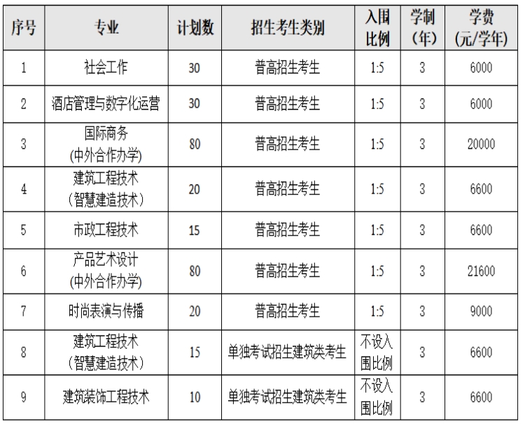 第七条 我校2023年面向浙江省高职提前招生计划共 300人,其中普高招生考生计划275人,单独考试招生考生25人。具体分专业招生计划如下: