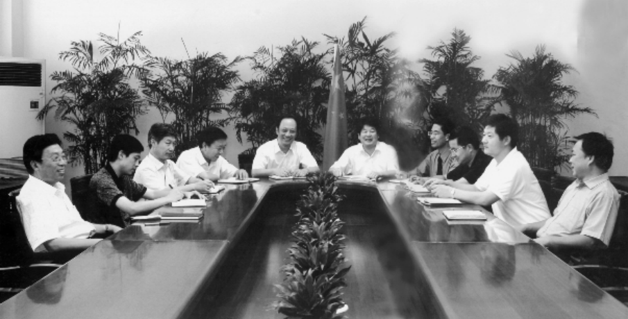 学校领导班子描绘二次创业宏伟蓝图。(右五为党委书记潘璋德,左五为校长盛健)
