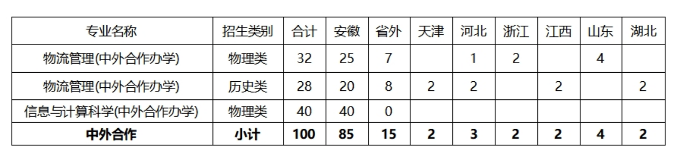 合肥大学2024年中外合作专业分省计划一览表(安徽省院校代码为9015)